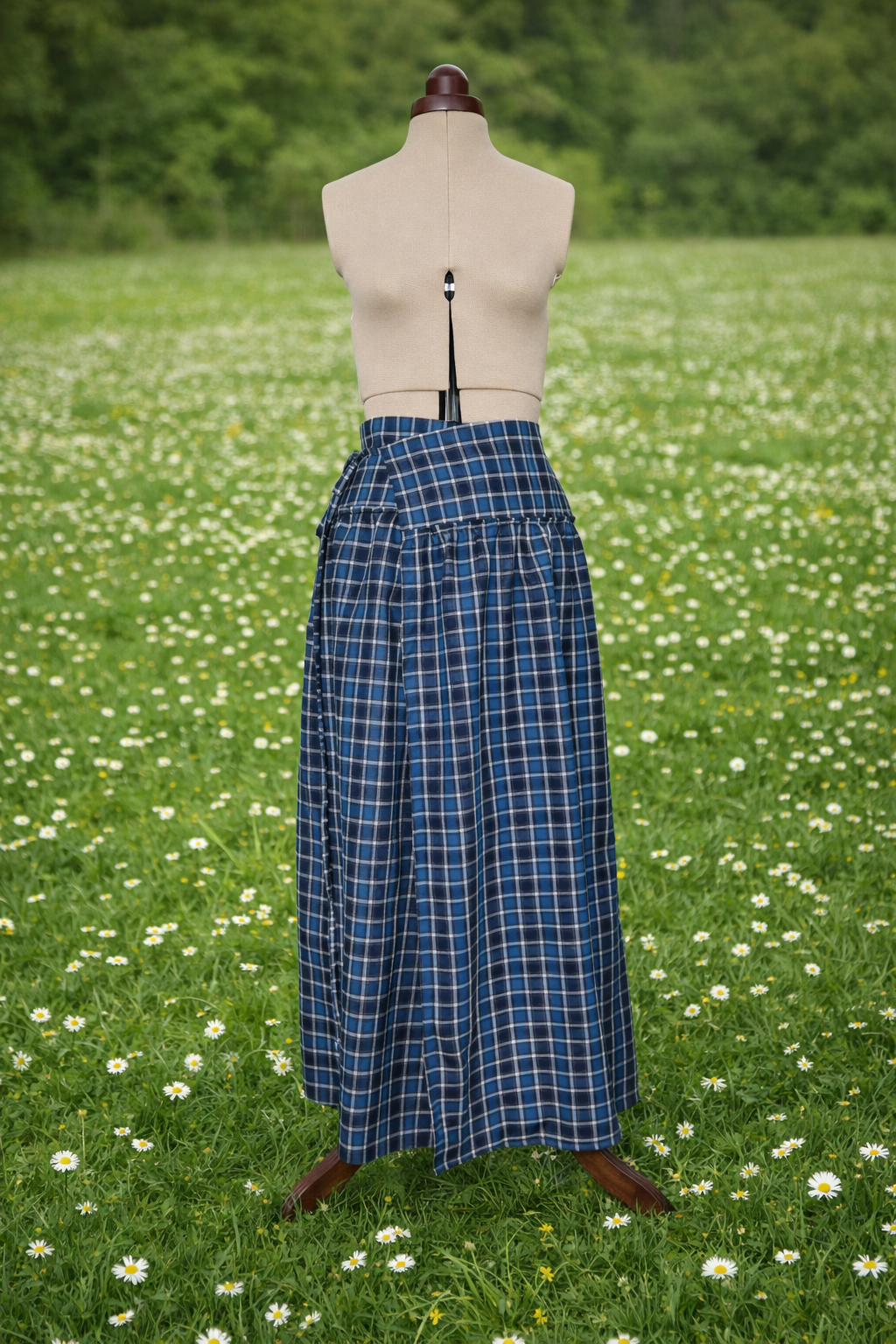 Jupe longue portefeuille à carreaux